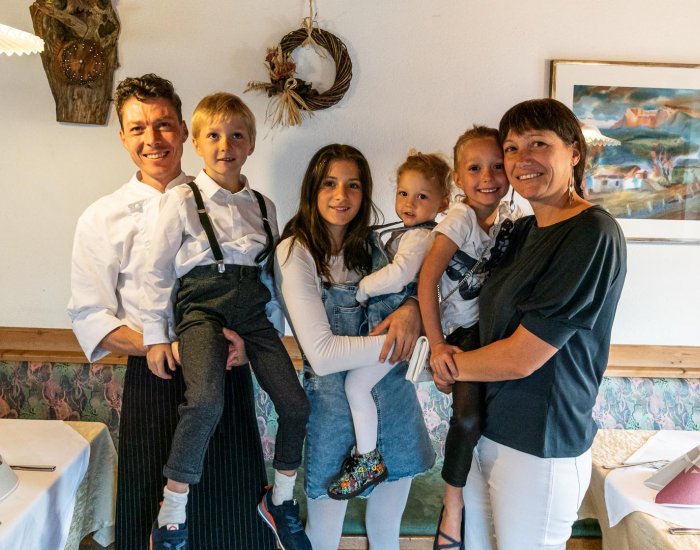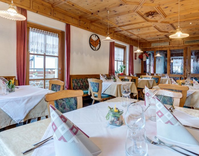 Der Speisesaal mit Täfelung aus Zirm bietet 30 Sitzplätze und ist bestens geeignet für Tauf- und Jahrgangsfeiern, Familienfeste oder Firmenessen. Auf Anfrage stellen wir Ihnen ein Menü nach Ihrem Geschmack zusammen und decken den Tisch festlich und passend zur Feier