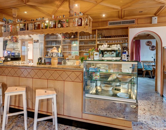 Wer geht schon nicht gerne in die Bar? Genießen Sie einen aromatischen Kaffee, ein kühles Bier, ein Gläschen Wein! Wir servieren Ihnen heiße Getränke, Softdrinks, verschiedene Biere und erlesene Weine. Auf unseren fünf Tischen in der Bar können Sie eine Birmehlroulade mit hausgemachtem Eis genießen, ein „Karterle“ machen oder einfach nur gemütlich in Ruhe die Zeitung lesen.